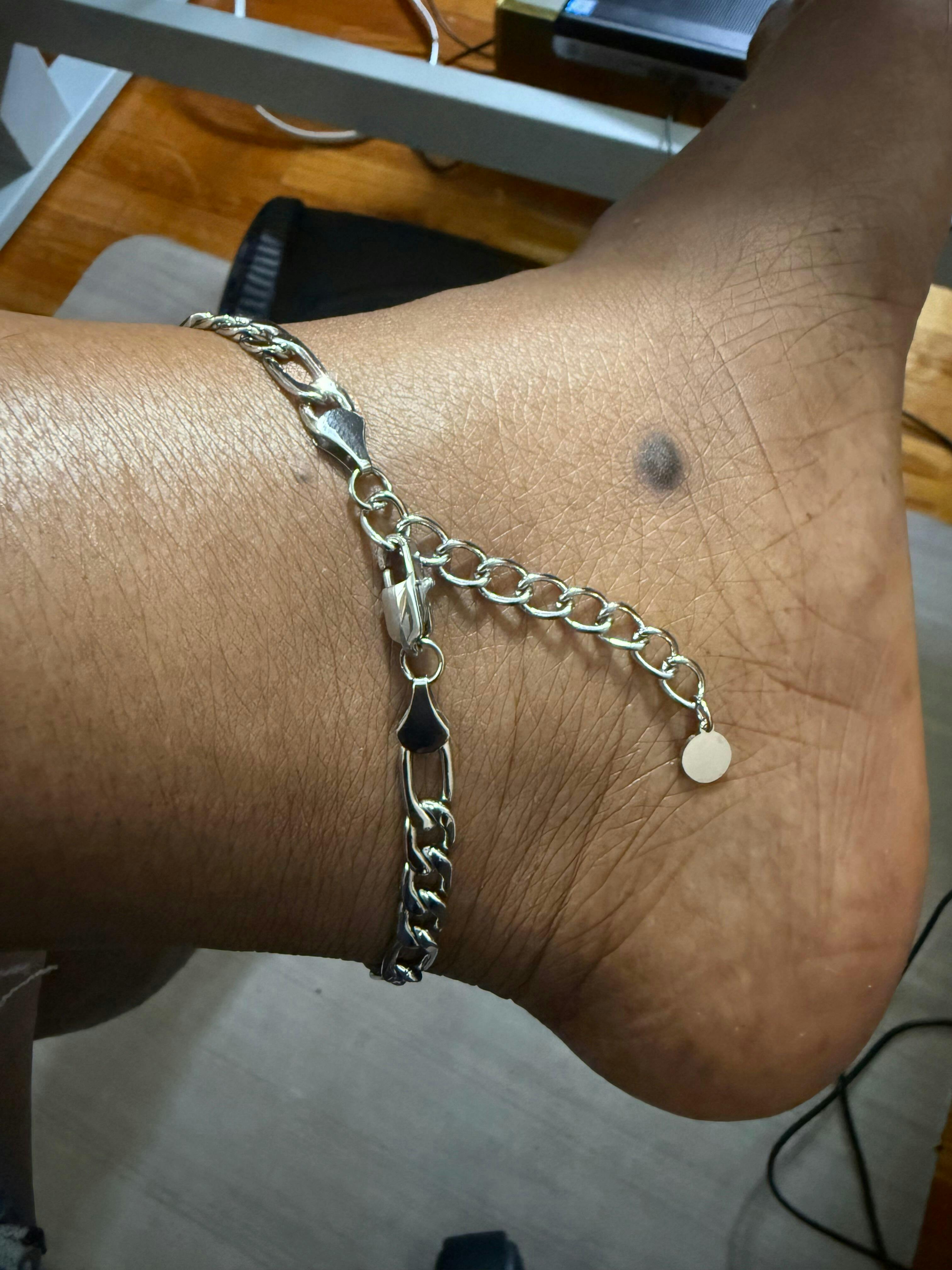 Our Figaro Anklet is made to fit multiple ankle sizes with an adjustable extension chain.